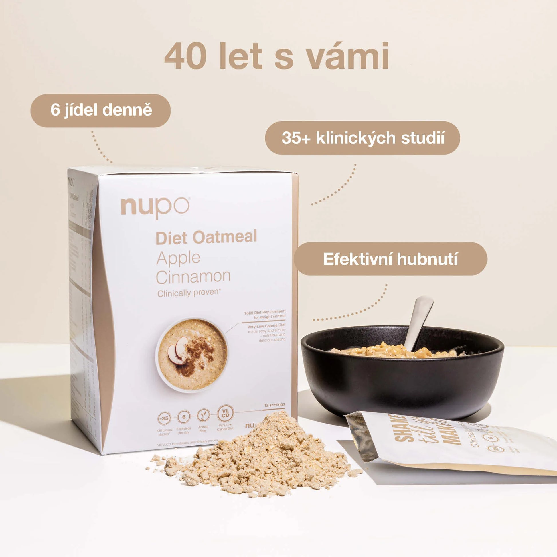 NUPO je nízkokalorický program pro redukci hmotnosti, který vás rychle a zdravě dostane do skvělé formy. Tato dánská dieta obsahuje všechny složky vyvážené stravy (bílkoviny, sacharidy, vitamíny a minerály) namíchané tak, abyste efektivně zhubli a nedostavil se jojo efekt. Díky jeho skvělé chuti nestrádají ani vaše chuťové buňky a vysoký obsah vlákniny zase zabraňuje pocitu hladu, který byste při šesti porcích denně mít neměli. S NUPEM nemusíte nic vážit či počítat kalorie. Vše je již připraveno. NUPO je baleno po jednotlivých porcích, umožňuje vám tedy vzít si ho pohodlně kamkoli s sebou. K jeho přípravě potřebujete pouze šejkr a vodu.