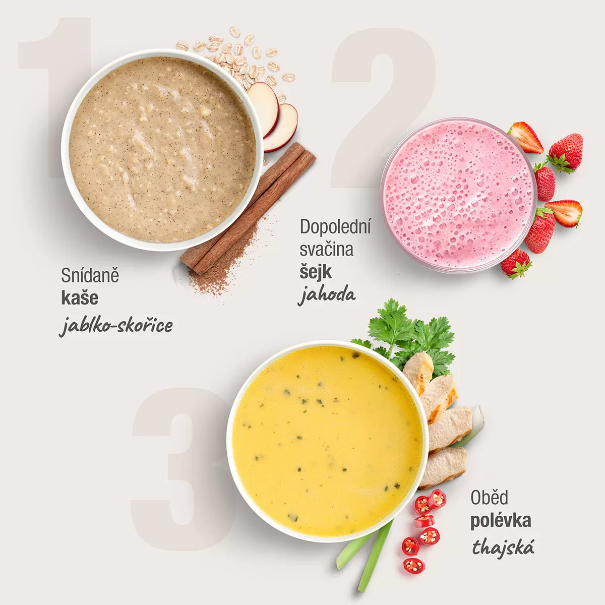 - Balení obsahuje 8 šejků, 7 jídel a 3 polévky